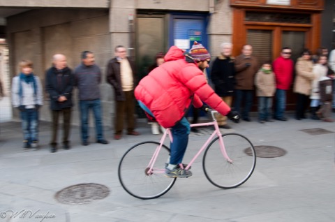 Every Christmas, for the last 75 years, the fine people of Segovia have gathered for the bicycle race to end all bicycle races, one in which there is no pedaling. But, Will, how do they race without pedals you may ask. A fine question, a fine question indeed. The cyclists mount their bicycles on the street at the top of the aqueduct then race down the hill, gathering as much speed as possible. At the bottom of the hill they make a turn through the center of the crowd, beneath the nearly 2,000 year old aqueduct, and begin making their way up the hill on the opposite side. The cyclist who makes it the farthest up the hill wins. People of all ages, from young whippersnappers to old fogies, participated in the race with a wide range of bicycles including custom-made peddle-less bikes and a E.T. in a basket. There was even an old man with a bicycle made out of wood!